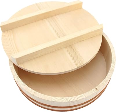 BambooMN 10.6 Hangiri Oke Sushi Rice Cooling BowlTub with Lid, 1 Piece - Small