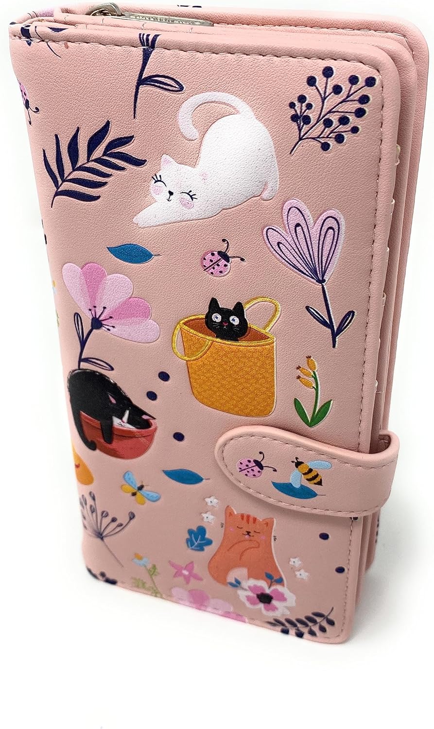 Shag Wear Cats in the Garden Large Animal Wallet for Women and Teen Girls Faux Vegan Leather 7 Pink